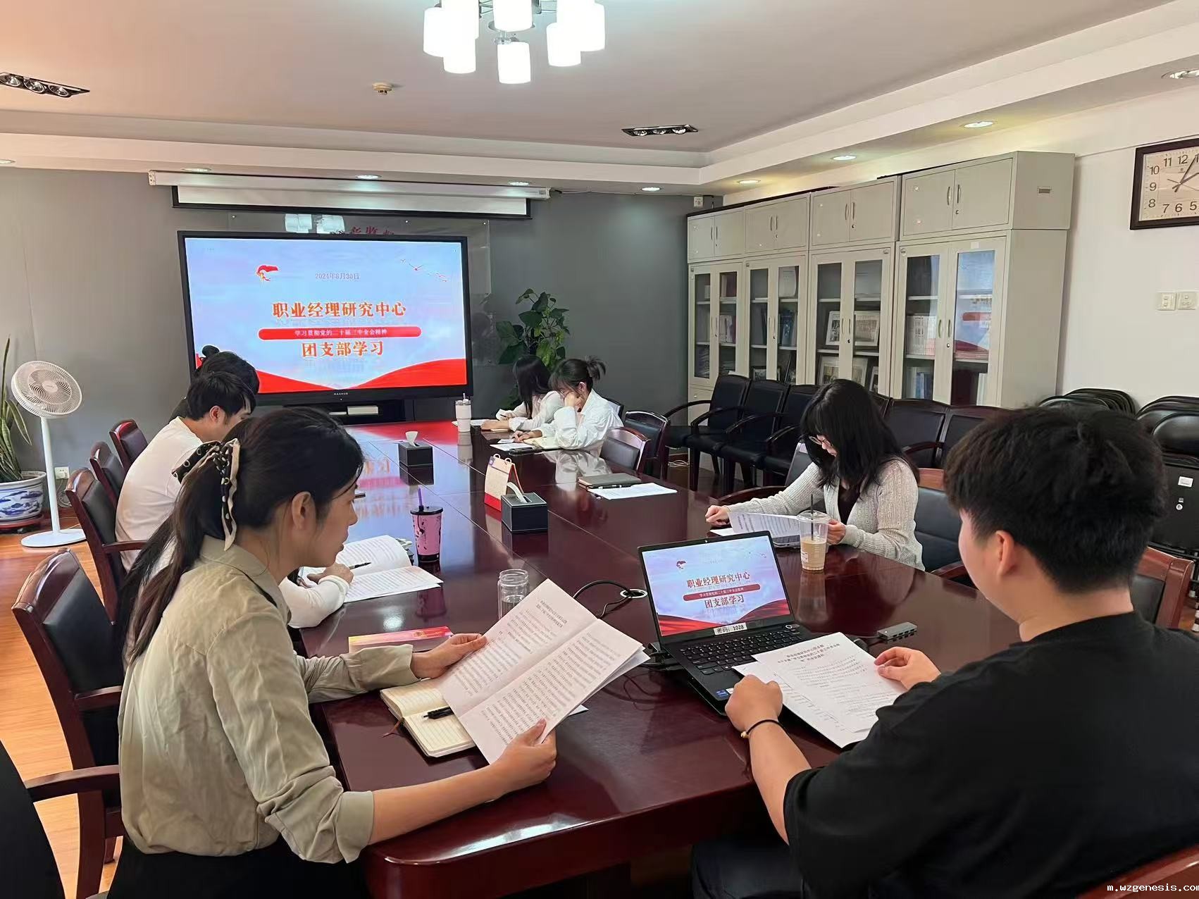 8月30日,职业经理研究中心团支部组织青年团员开展二十届三中全会精神集体学习,引导中心团员认真学习领会全会精神,把学习宣传贯彻全会精神作为当前和今后一个时期的重要政治任务,切实把思想和行动统一到党中央决策部署上来,做到学习跟进、认识跟进、行动跟进。